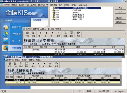 ● 多视角的财务核算与分析查询 在实现财务核算的同时,企业需要对一些重要项目(如供应商、客户、部门、在建工程、产品成本等等)进行单独管理,金蝶KIS迷你版的“核算项目”为企业的特殊管理需求提供了完善的解决方案。