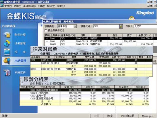● 快速应用,快速见效 金蝶KIS迷你版的界面设计标准,美观大方。业务流程设计清晰,账簿报表一目了然。软件的模块化程度高,在一个模块中聚合了多种功能,您只需记忆少量功能模块的使用方法就能完成全部工作。同时,随同产品还提供了金蝶KIS多媒体教学光盘,便于自学。使用户可在最短时间内上手。附图是金蝶KIS7.4迷你版的出纳管理的一个界面,请大家先睹为快。
