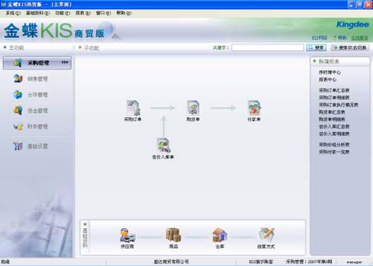 对订货、入库、退货以及估价入库等关键业务的全面管理,也满足预付定金、代垫运费、货到付款等资金业务,实现商品采购和资金的紧密连接, 通过对供应商的信用、等级价格、限价等控制以及历史价格查询,做到有效价格管控,快速选择质优价廉的供应商,通过采购在订量、销售在订量,预计总量,即时库存提示等,帮助用户做出合理采购决策,即时了解哪些商品需要订货及订货的数量,预置大量丰富的采购报表,如购货单汇总表、采购付款一览表、采购价格分析表等,有效管控采购业务合理进行。