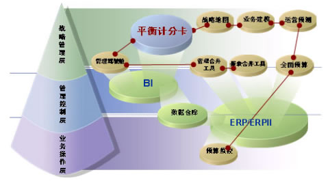 1、战略管理层工具:包括平衡计分卡、战略地图、业务建模、运营预测、全面预算、管理合并报表、报表合并工具、管理驾驶舱等,用于帮助企业高层进行战略制定、战略监控和优化。其中,平衡计分卡(BSC)是决策支持层的核心工具,完成对企业战略目标的分解和关键绩效指标(KPIs)的确定。商业智能(BI)是决策支持层的基础,许多重要的数据和分析评估方法都来源于它。