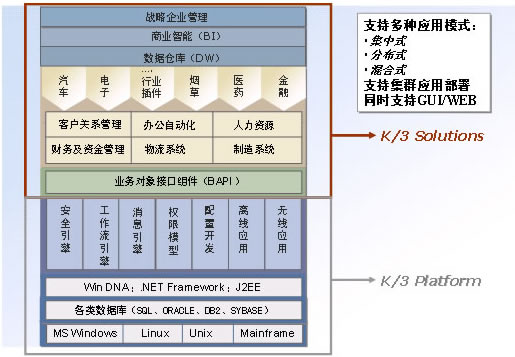 先进管理思想与中国业务实践的最佳结合金蝶K/3 V10采用国际先进的多层互联网应用架构,完全支持业界主流技术标准,适应大中型集团企业复杂的业务和战略企业管理需要。