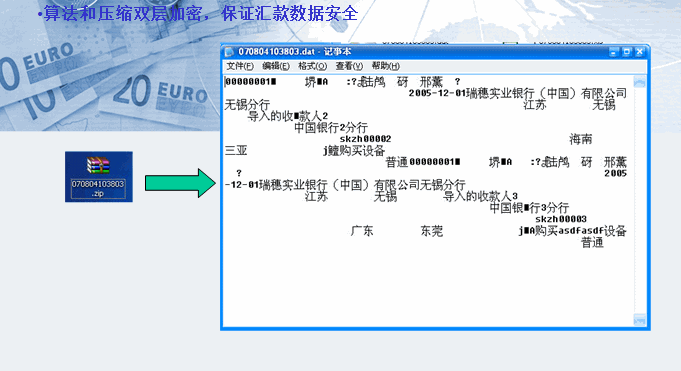 算法和压缩双层加密,保证汇款数据安全