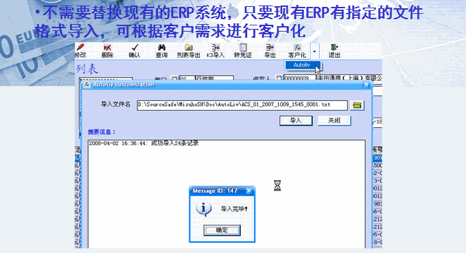 不需要替换现有的ERP系统,只要现有ERP有指定的文件格式导入,可根据客户需求进行客户化