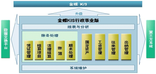 金蝶KIS行政事业版7.6是在7.5版的基础上,结合政府收支分类改革及行政事业单位的实际需要,专门为行政事业单位提供的一套财务管理解决方案,实现财务运作的全程管理和收支体系的规范化。金蝶KIS行政事业版7.6由账务处理、报表、工资、固定资产、出纳管理、往来管理、财务分析组成。