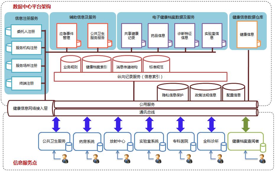 本平台利用先进的信息化技术,参照《基于健康档案的区域卫生信息平台建设指南》(试行)及《健康档案基本架构与数据标准》(试行)的颁布标准和指南,在基于医疗信息标准、基于健康档案与临床业务的基础上、从不同的视角全面采集区域内卫生相关信息,使区域内的社区服务、双向转诊、居民健康档案、药品管理、慢病管理、医保互通、远程医疗、网络健康教育与咨询、预防保健、医疗服务,医政管理、卫生管理等的数据能够互联互通,通过数据的集成与分析挖掘实现区域公共卫生的业务协同及决策管理。 同时提供一系列基于HL7,IHE,EHR,DICOM等规范的平台低耦合接入标准,使得医疗机构能够完美而快捷的接入,并且能够快速横向推广,实现平台和平台间信息的交互与利用,从而实现区域医疗网格化,并且进一步推动医疗云的发展。