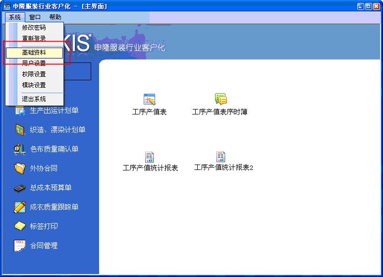 如上图所示,点“基础资料”子菜单,进入“基础资料”窗口,如下图所示: