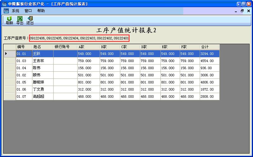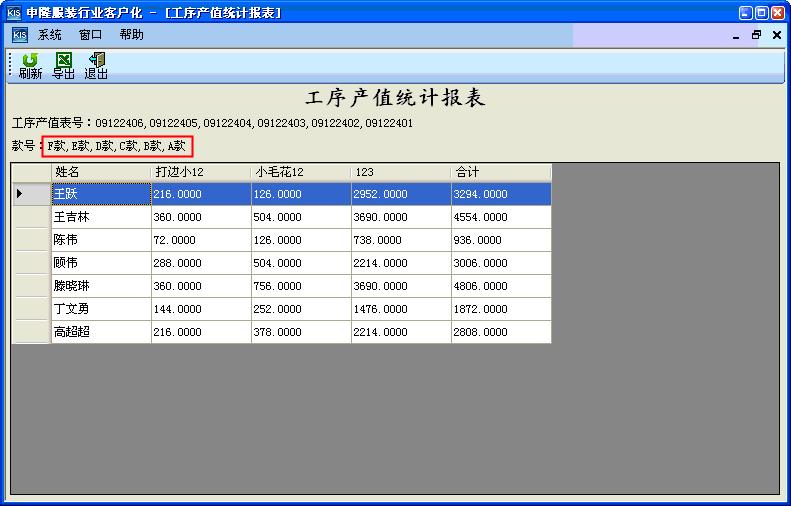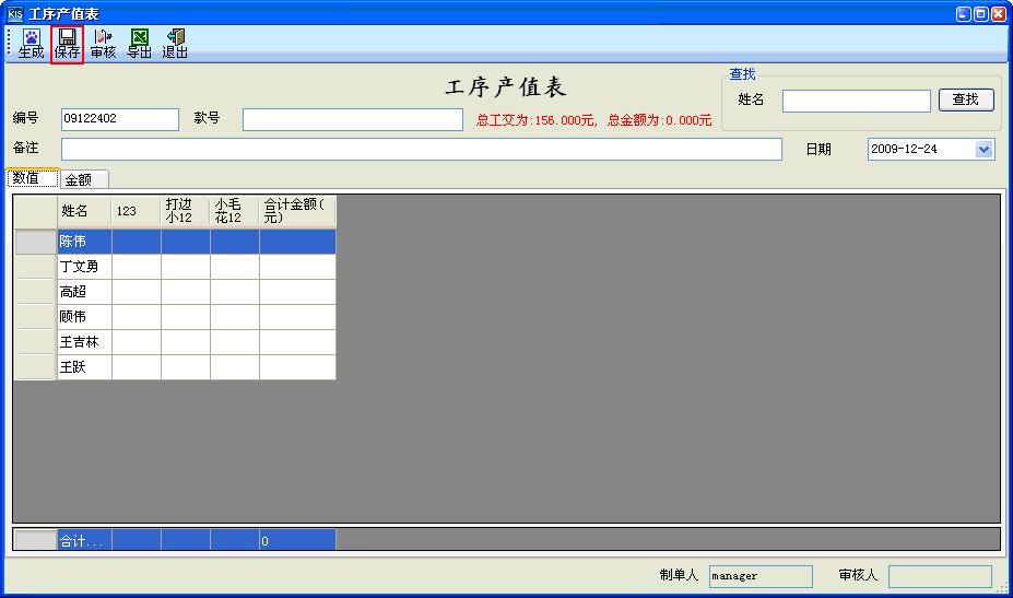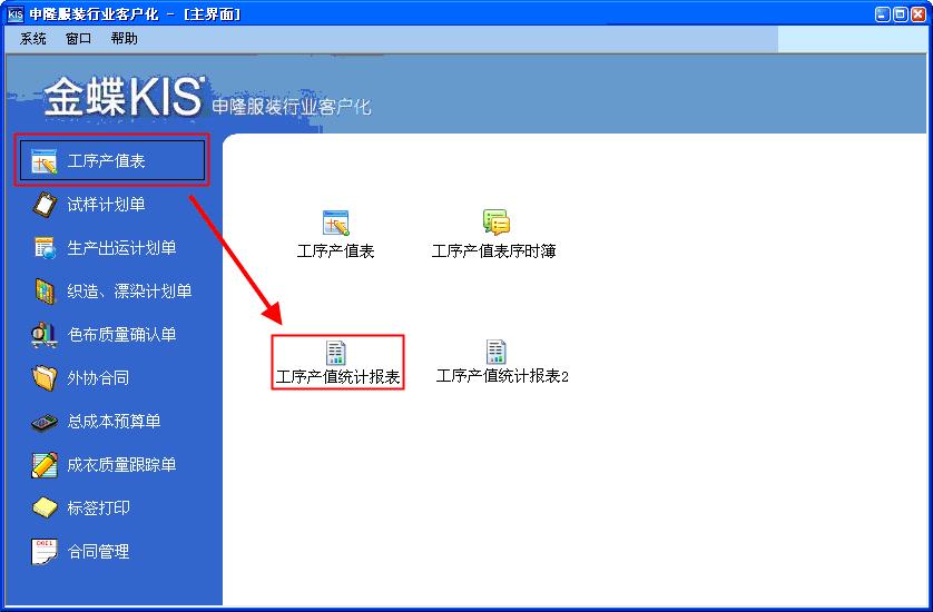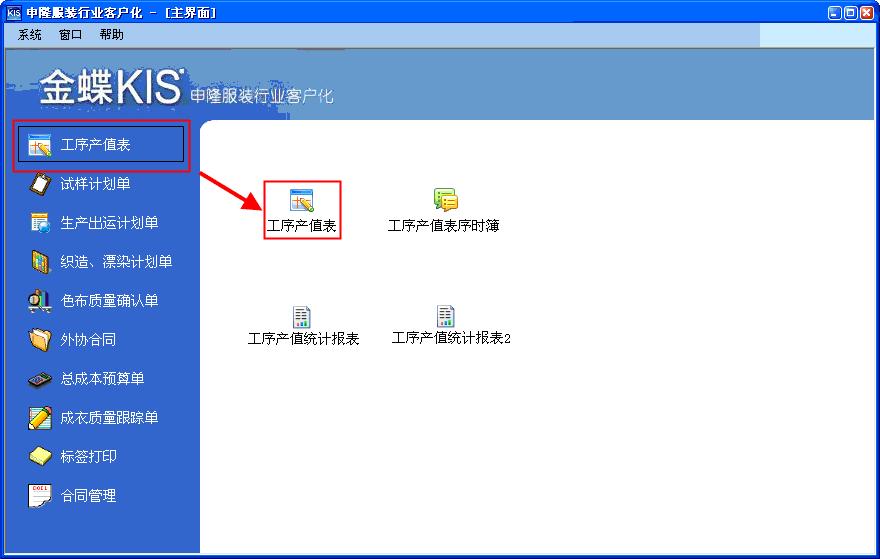 按上图所示步骤进入“工序产值表”窗口,如下图所示: