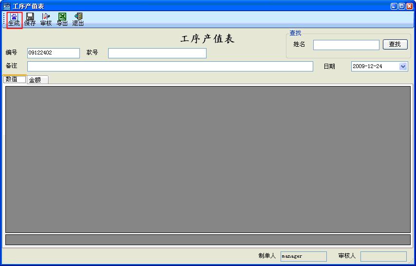点“生成”菜单按钮,打开如下“生成空白工序产值表”窗口: