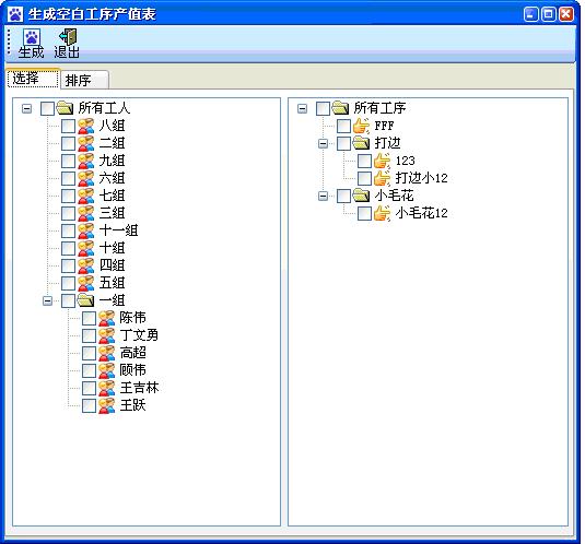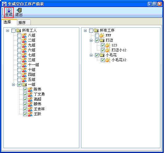 勾选所需工人和工序,点“生成”工具按钮,如下图所示: