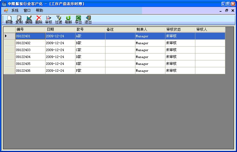 Ø 审核:审核“工序产值表”,可审核单独一条,或批量审核多条连续或不连续的“工序产值表”。对已经审核的单据,可实现“反审核”的功能。